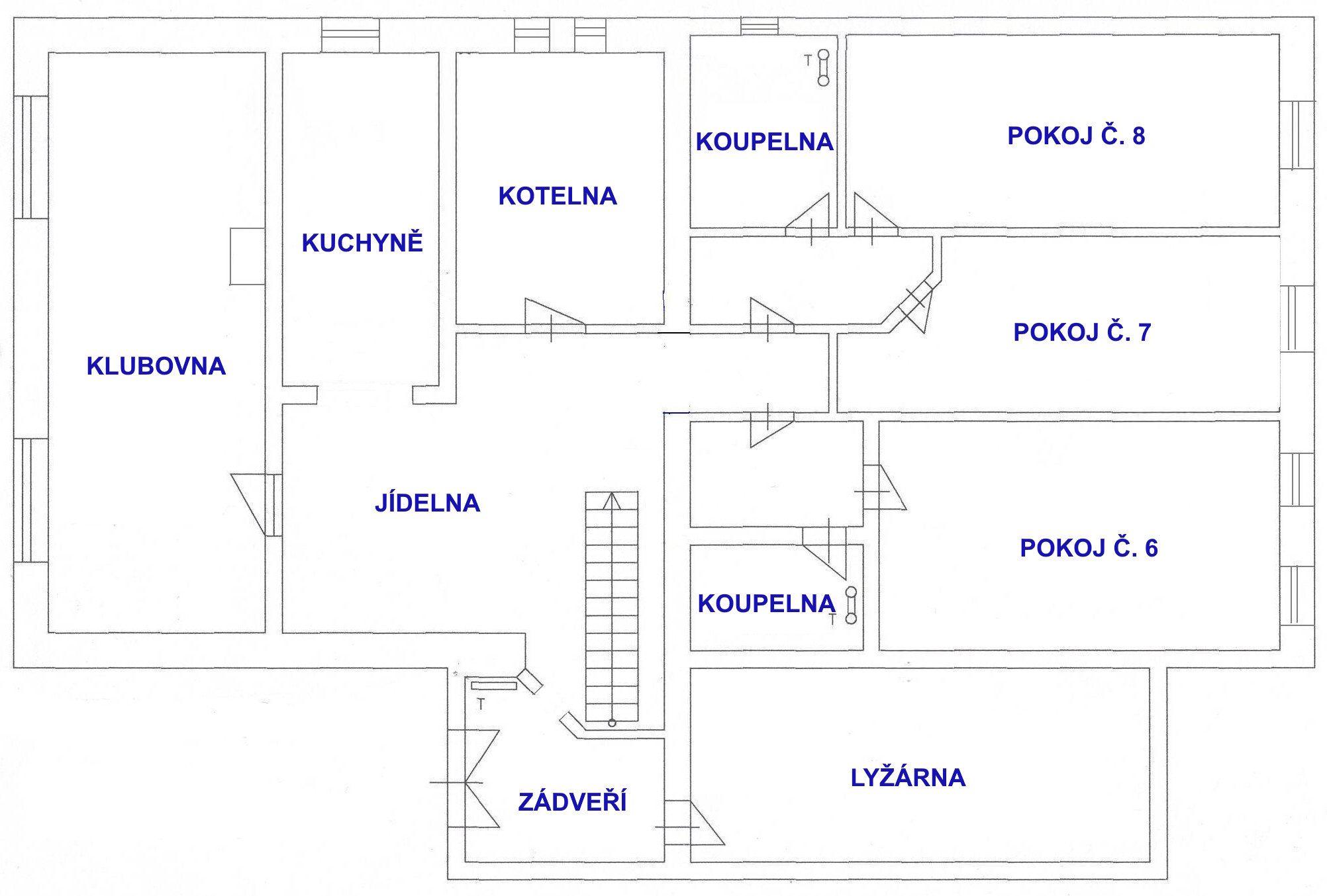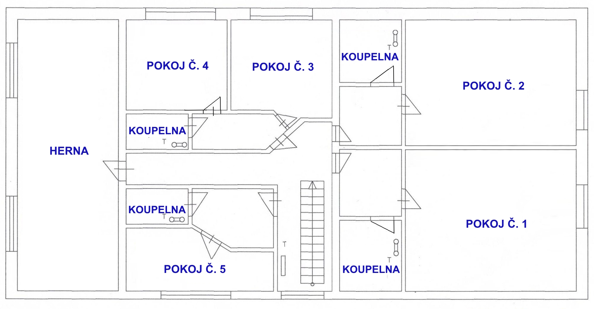 Pokoje č. 7 a 8 (2 lůžka v každém pokoji), sociální zařízení mají tyto pokoje společné